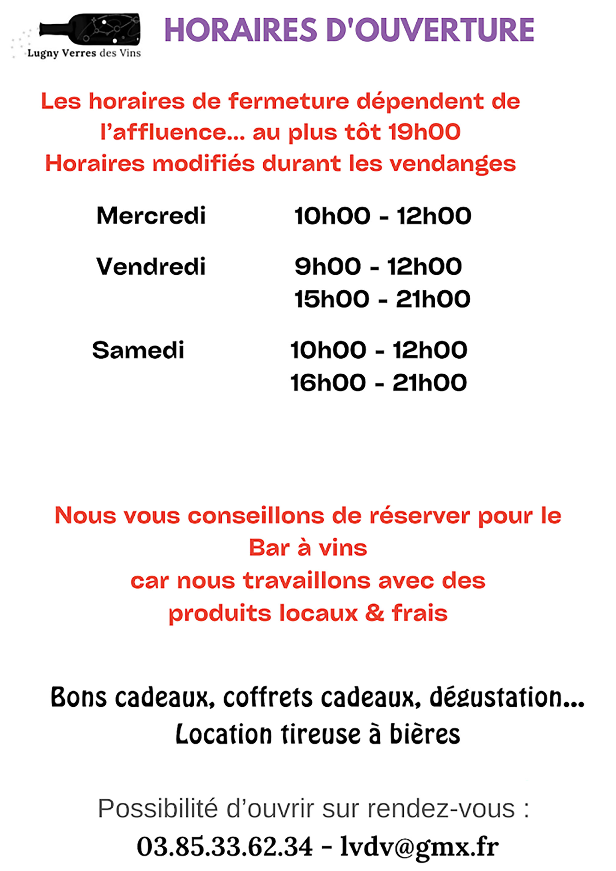 Du mardi au vendredi de 9h00 à 12h00 & de 14h30 à 18h30
