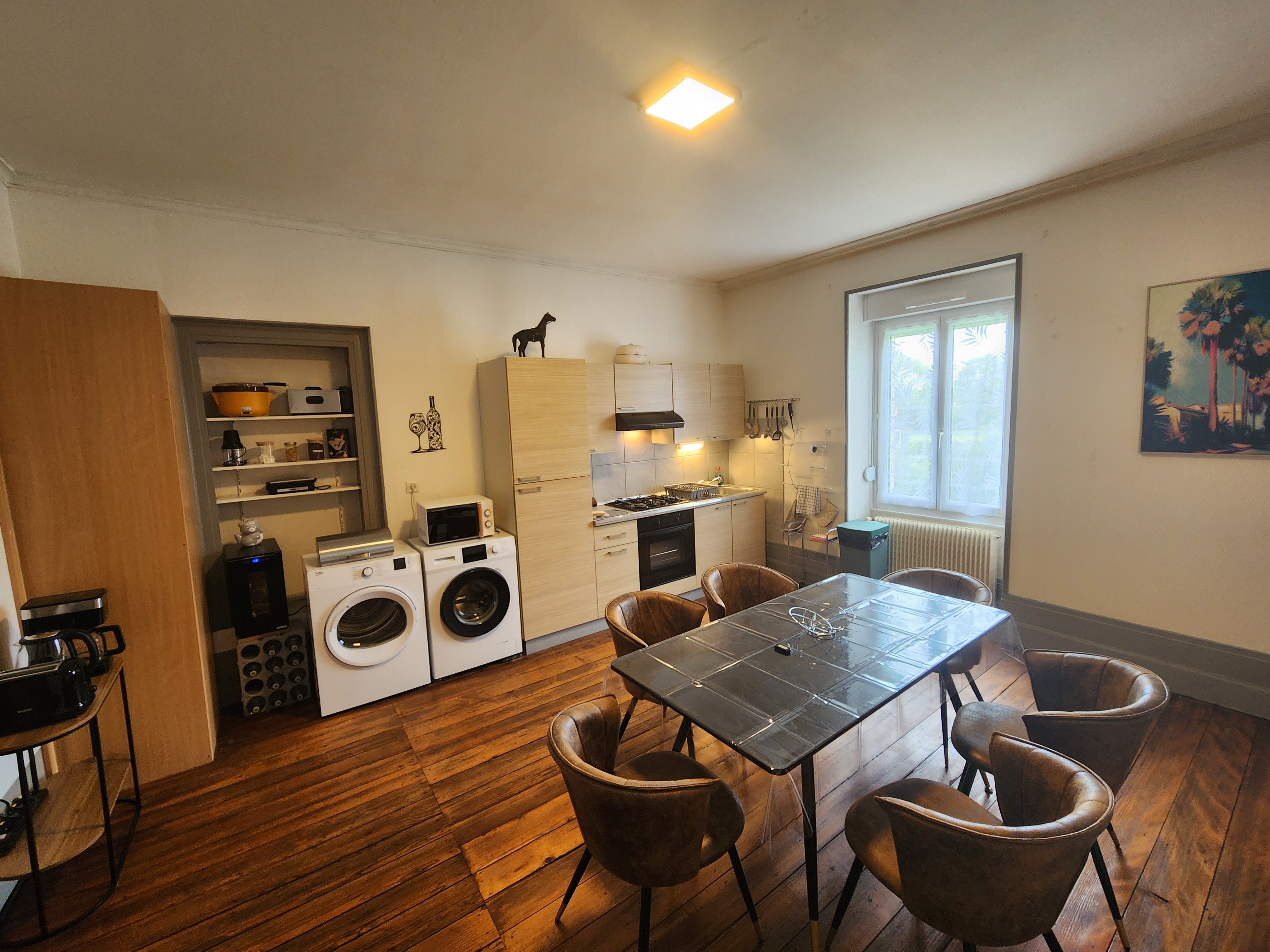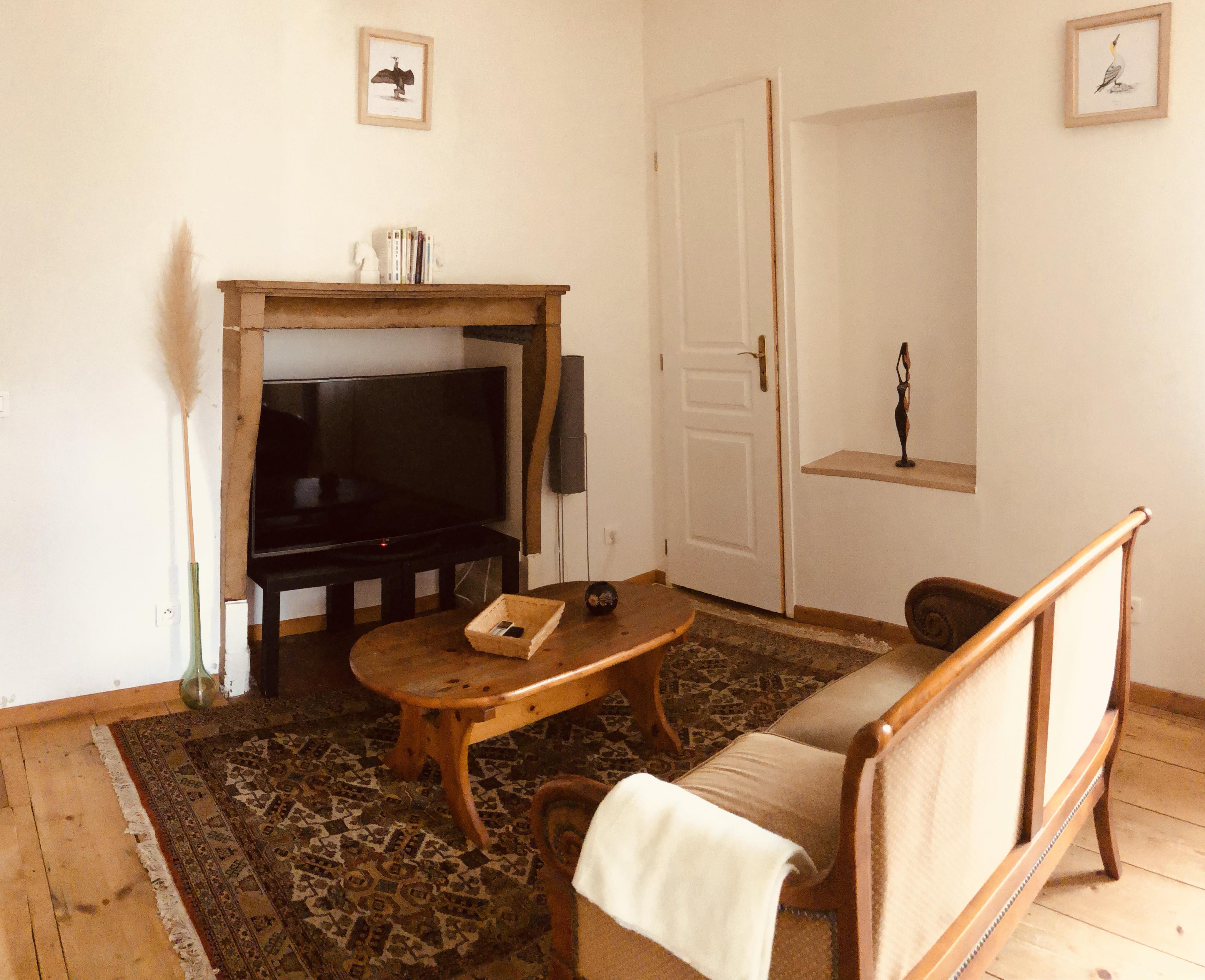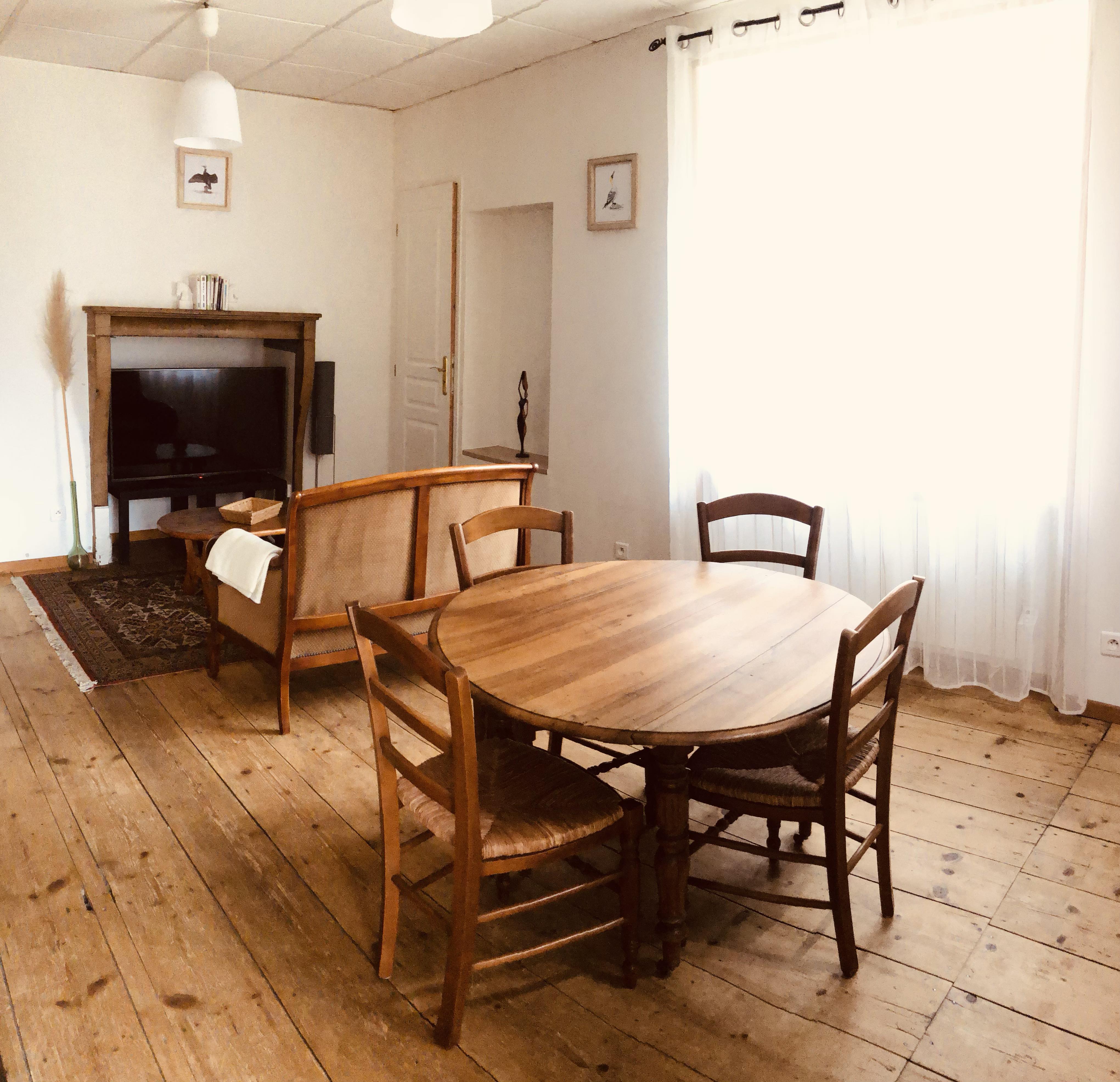 Ground floor: large and bright living room with view on the river including integrated kitchen, dining room and living room (2 extra beds in sofa bed in supplement). Bathroom and separate toilet. On the first floor : 2 beautiful bedrooms with each one a bed 160. Shower room and WC.